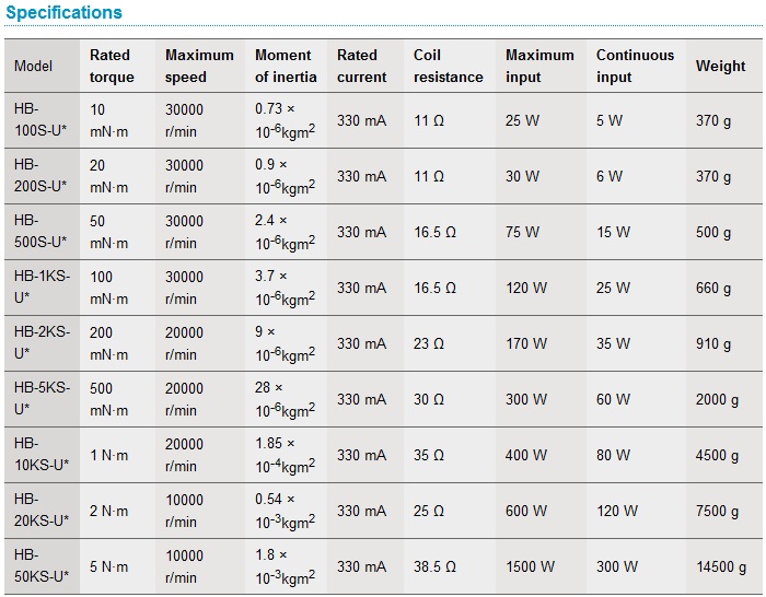 - 14 models available, with rated torques ranging from 5 mNm to 50 mNm.